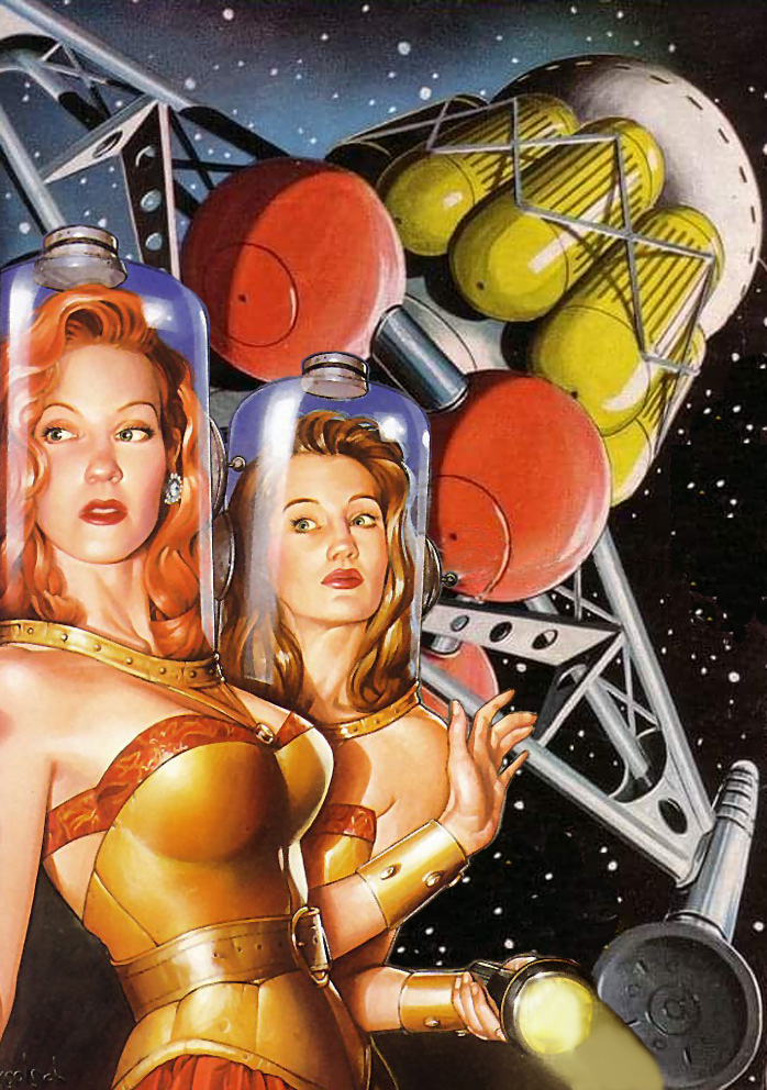 На ньому був темно-фіолетовий комбінезон, що тісно обтягував фігуру. Колір вдало пасував засмаглому обличчю, а фігура здавалася дивно атлетичною, і навіть нескромно випираючий гульфик в тому місці, де йому і належало випирати, анітрохи не псував враження. На Мірі був такий самісінький костюм, тільки без гульфика. Зате з величезним бюстом, на два розміри більше необхідного. У цьому трико Міра відчувала себе голою. І це її теж дратувало.